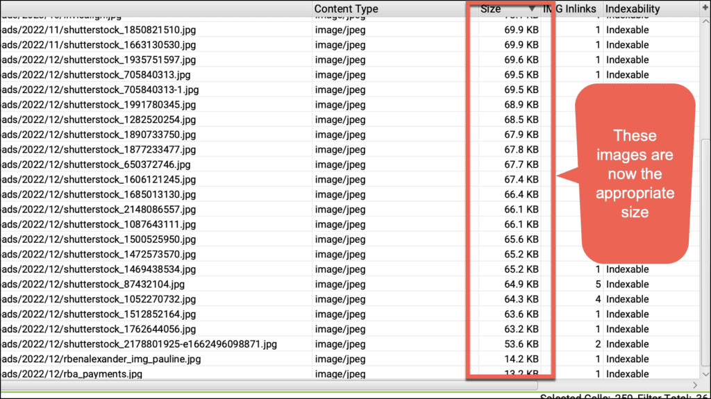 We noticed that a few of the image files were very large so we ran a crawl which revealed that most of the site's images had incredibly large file sizes, and should never have been posted to a live site like this. One of the many checks that we do when we build and launch websites is to make sure that image sizes are balanced -- small enough to load quickly, but large enough to display crisply.