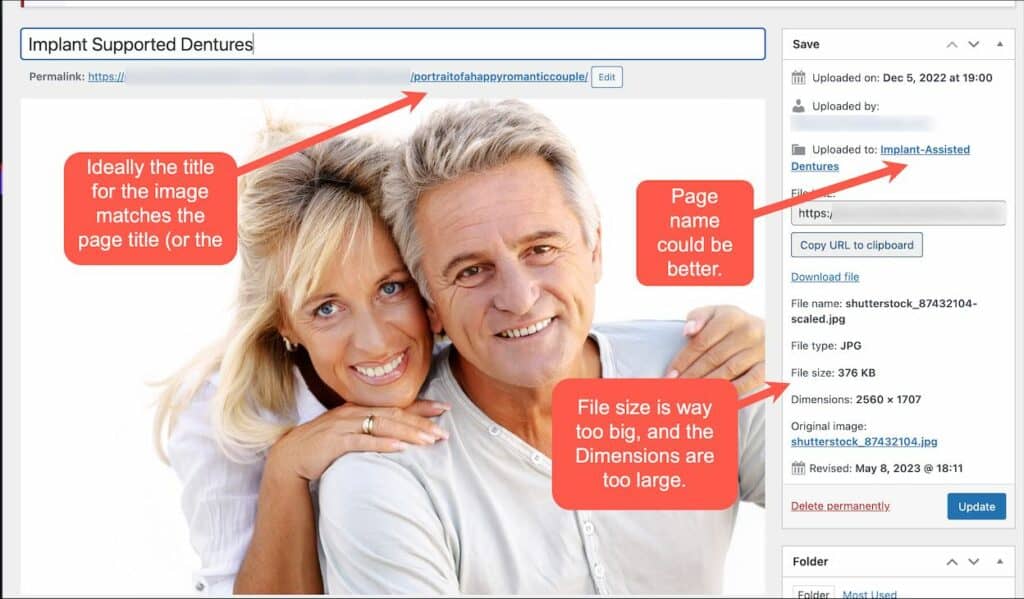 In this example below the image title wasn't changed - a key oversight that can potentially hurt your rankings.