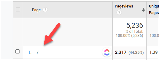 While you can spend hours and hours examining the bounce rates on your web pages, it's not a productive use of your time (or a vendor's time) unless the pages in question have the potential to make a difference for your business. For example, when we run SEO campaigns, we identify and start with the existing pages that have the greatest potential to give the largest ROI as quickly as possible, vs. trying to optimize every page regardless of value. So now that you know where to find your pages' bounce rates, head over to Google Analytics, find your home page (it will usually often show up as a slash "/" (without the quotes) and look at your bounce rate.